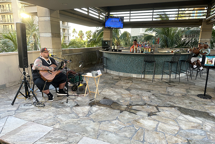 編集部員が行った日は、ハワイを舞台にしたドラマ「ハワイ・ファイブ・オー」にも出演されていたショーン・モクアヒ・ガーネットさんが演奏をされていました。耳心地のよい優しい歌声で聞き入ってしまいました~。ぜひ皆さんも滞在中に行ってみてくださいね!